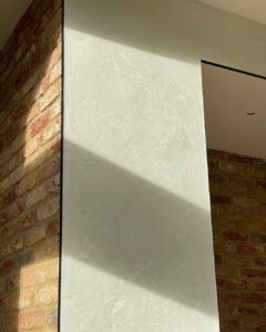 We colour-matched the soft, earthy tone to the surrounding painted walls to ensure the finish would blend seamlessly while still offering its own presence. The slightly pitted texture was intentional — designed to bring a touch of rustic charm that pairs effortlessly with the exposed brickwork nearby.